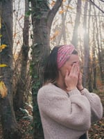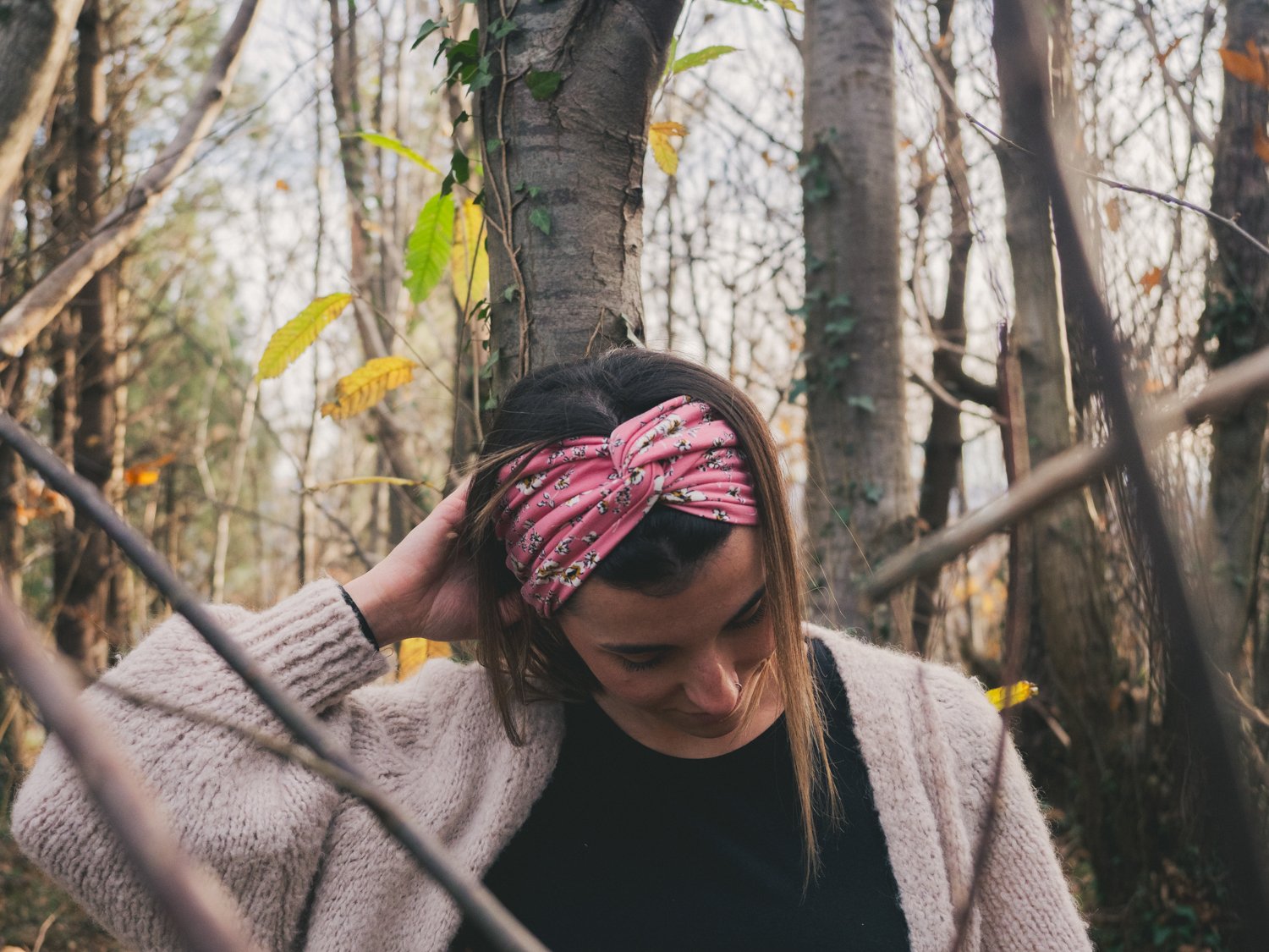 Turbante moduan jartzeko zinta itxia eta elastikoa.