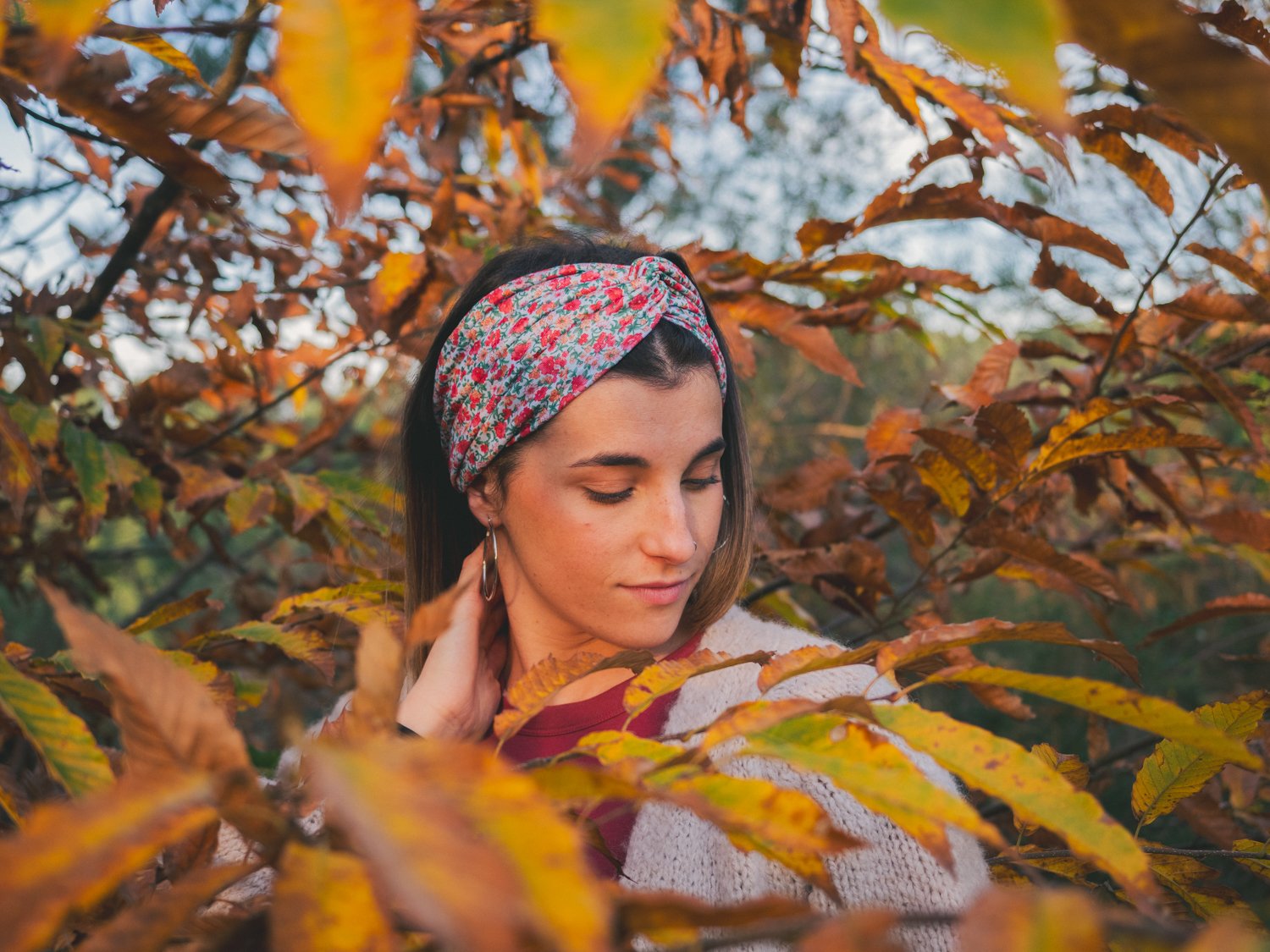 Turbante moduan jartzeko zinta itxia eta elastikoa.