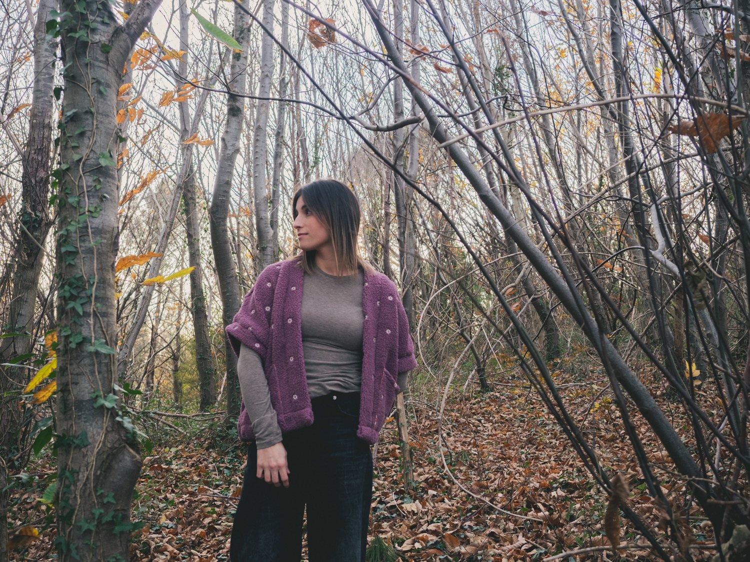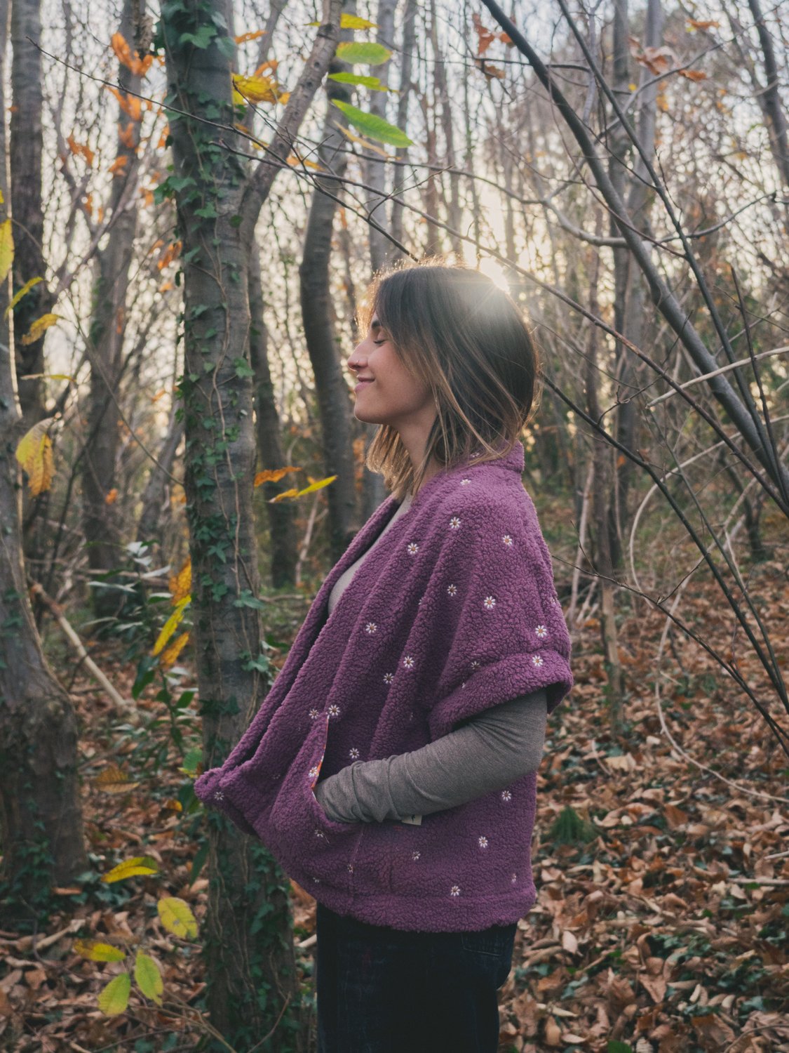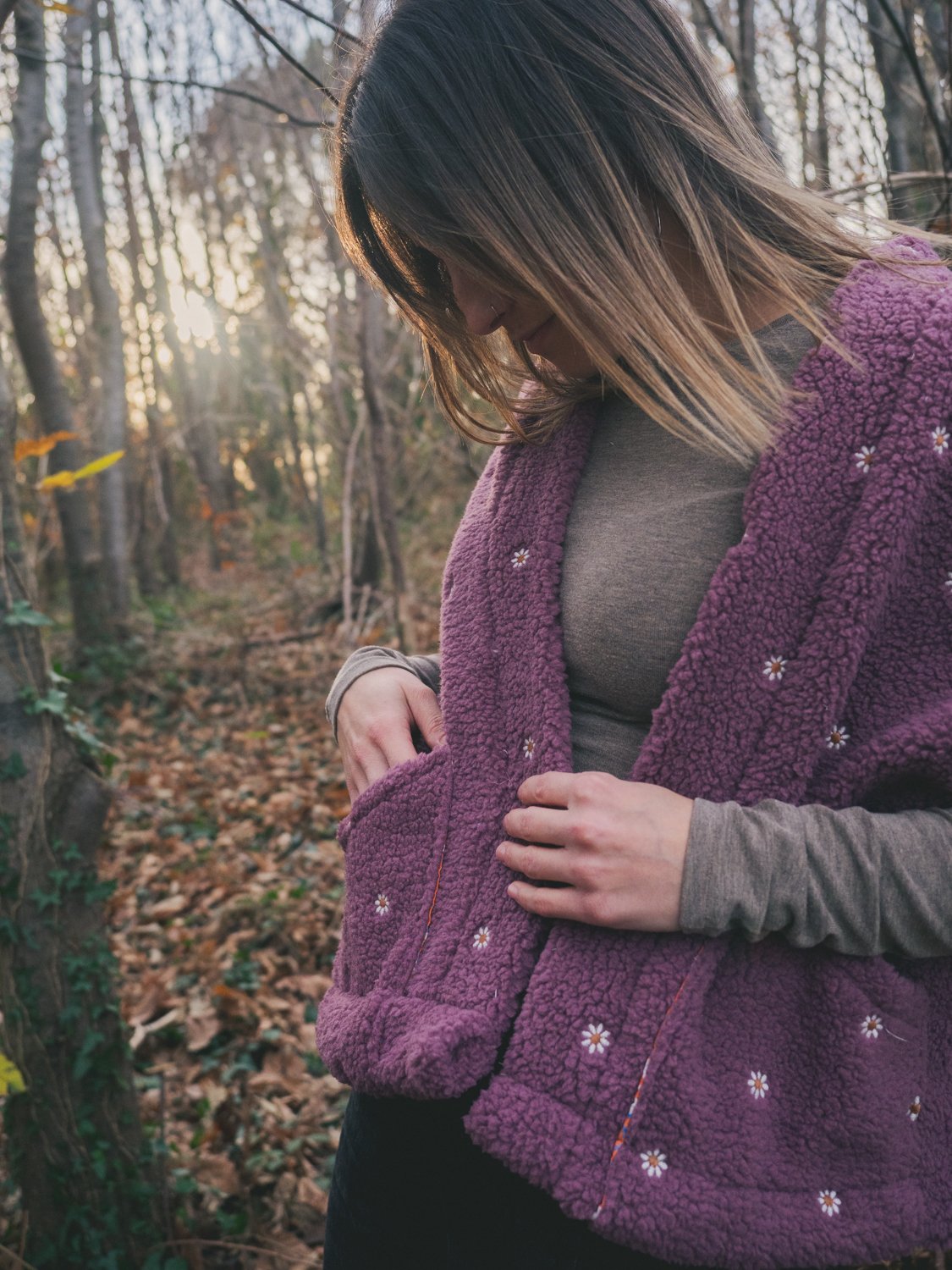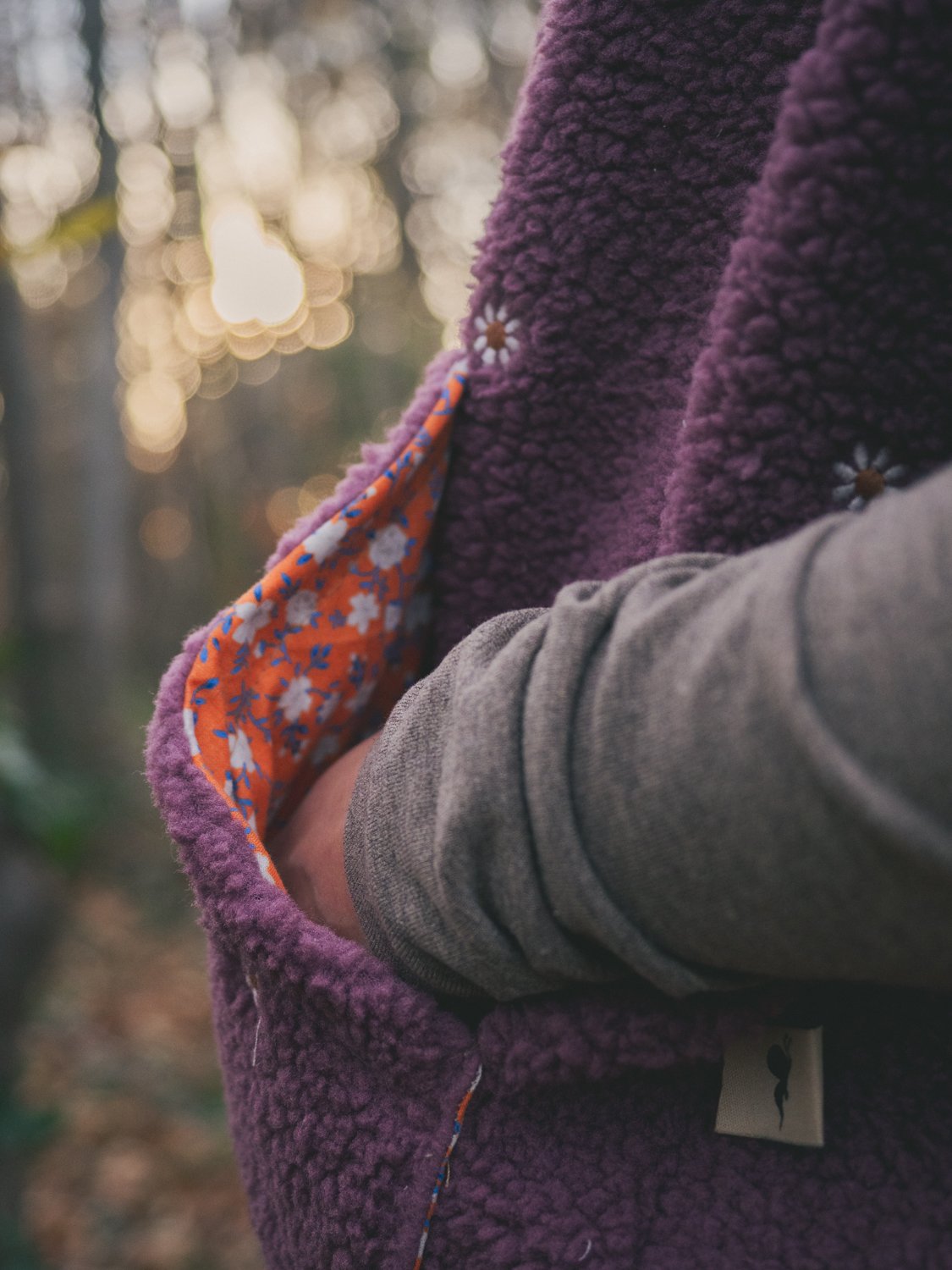 Txaleko polar zabala, bi poltsiko asimetrikoekin aurrealdean, barrualde estanpatu duna